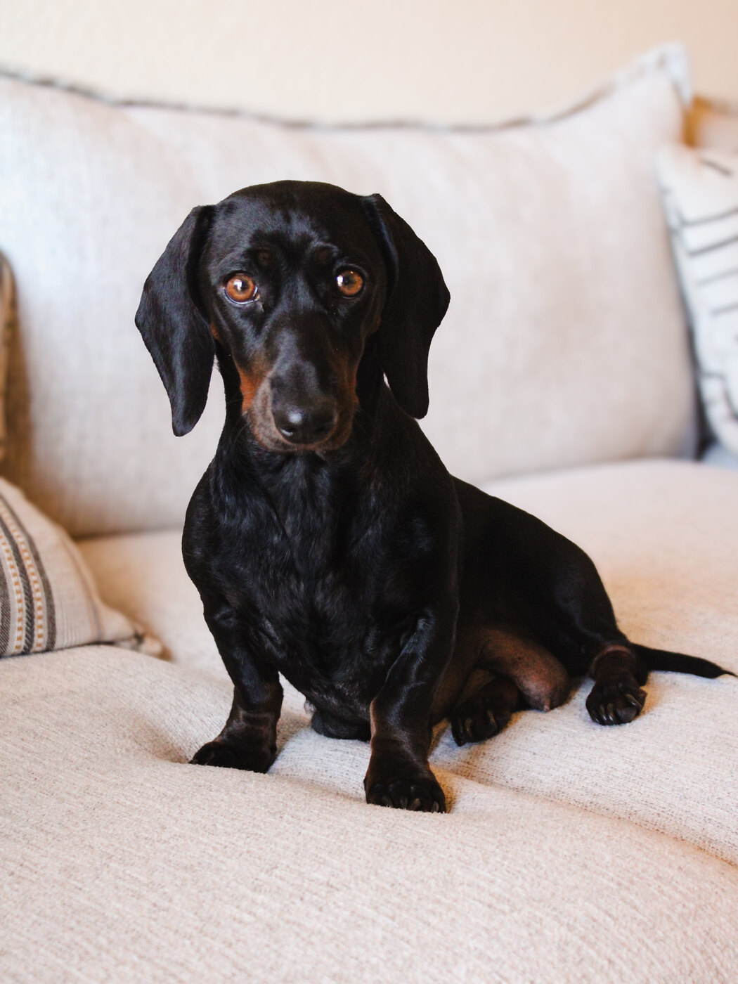 This thoughtfully planned breeding is expected to produce puppies in chocolate & tan, black & tan, brown-based red, and black-based red, with both smooth and long coats possible. Puppies will be raised in our home and will go home with a puppy care package, started in potty training and dog-door training, and crate training. Each puppy will receive a vet record including routine deworming and their first set of vaccinations.